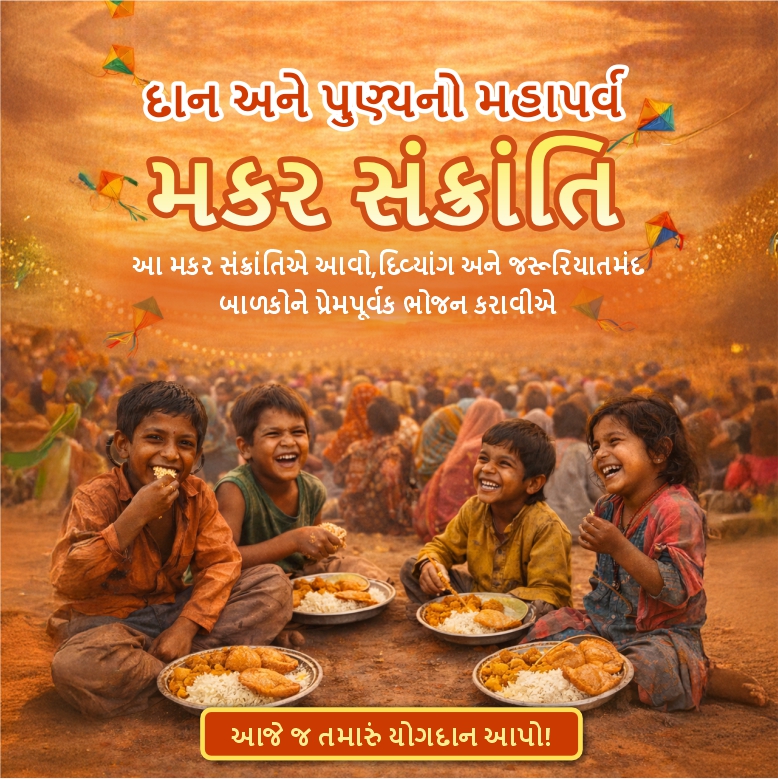 મકરસંક્રાંતિના આ પવિત્ર અને ગૌરવપૂર્ણ પ્રસંગે, નારાયણ સેવા સંસ્થાન ગરીબ, જરૂરિયાતમંદ અને દિવ્યાંગ બાળકો માટે એક ખાસ ભોજન સેવાનું આયોજન કરી રહ્યું છે, જેનો ઉદ્દેશ્ય લગભગ 5,000 બાળકોને મીઠા અને સ્વાદિષ્ટ ભોજન પીરસવાનો છે. આ પવિત્ર તહેવાર પર, તમે પણ તમારા પરિવાર વતી આ ઉમદા કાર્યમાં જોડાઈ શકો છો અને આધ્યાત્મિક પુણ્ય અને આશીર્વાદ મેળવીને અન્નદાનની આ પવિત્ર સેવાનો ભાગ બની શકો છો.
