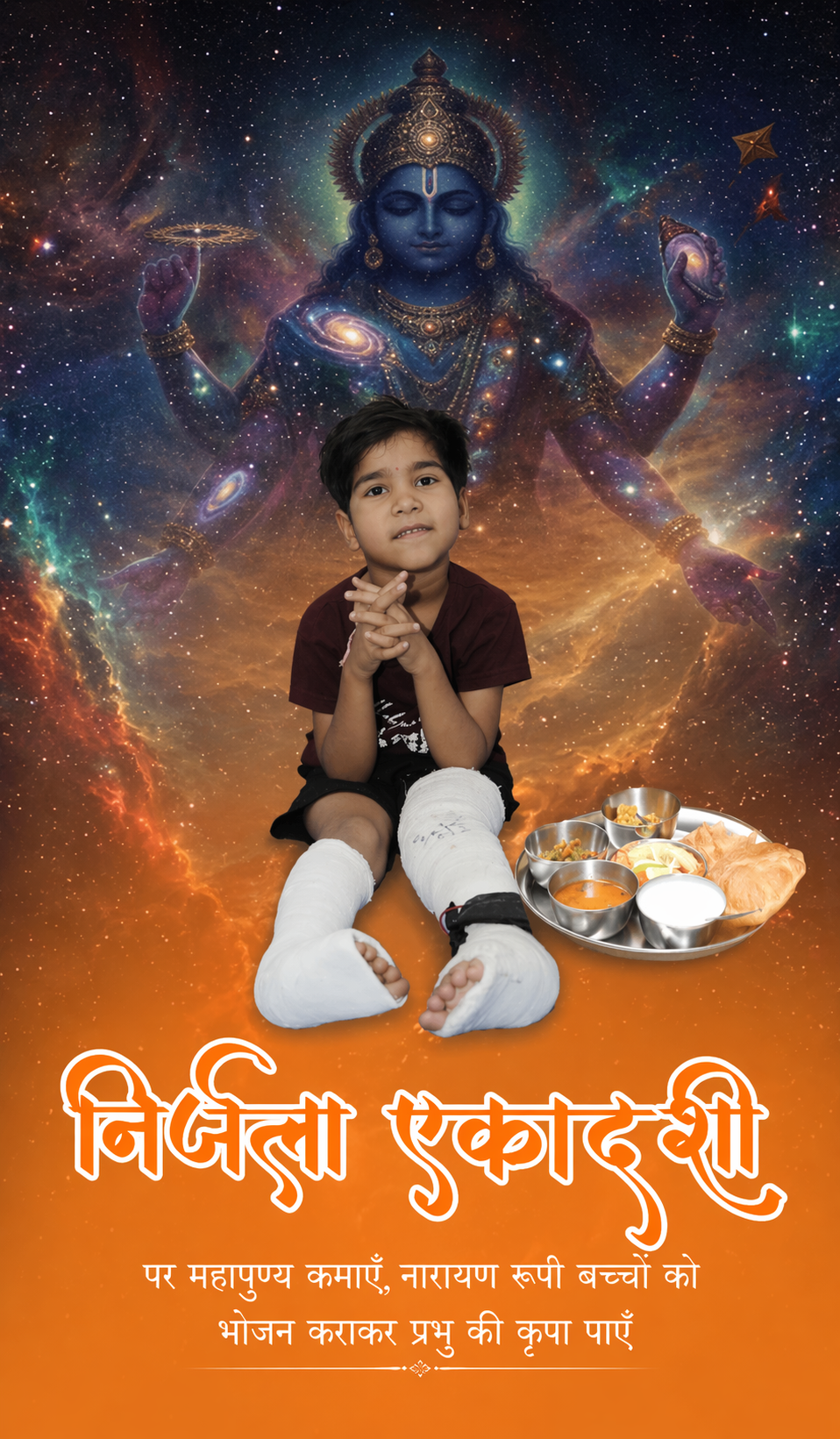 आपके दान से मिलेगा भोजन आपके सहयोग और दान से दीन-हीन, असहाय, जरूरतमंद और दिव्यांग बच्चों को भोजन कराया जाएगा। यह केवल दान नहीं, बल्कि स्वयं नारायण सेवा का पावन अवसर है।