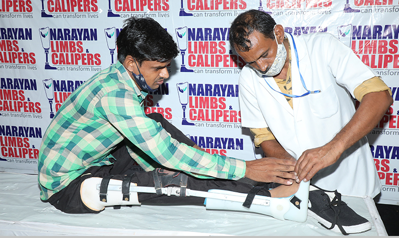 Narayan Seva Sansthan has a fully equipped Narayan artificial limbs workshop that is dedicated to providing amputees with customised Narayan artificial limb(s). When a patient visits Narayan Seva Sansthan requesting an Narayan artificial limb for them, they first go through the measurement process. Thereafter, they are provided with a prosthetic limb in 3 days-time.