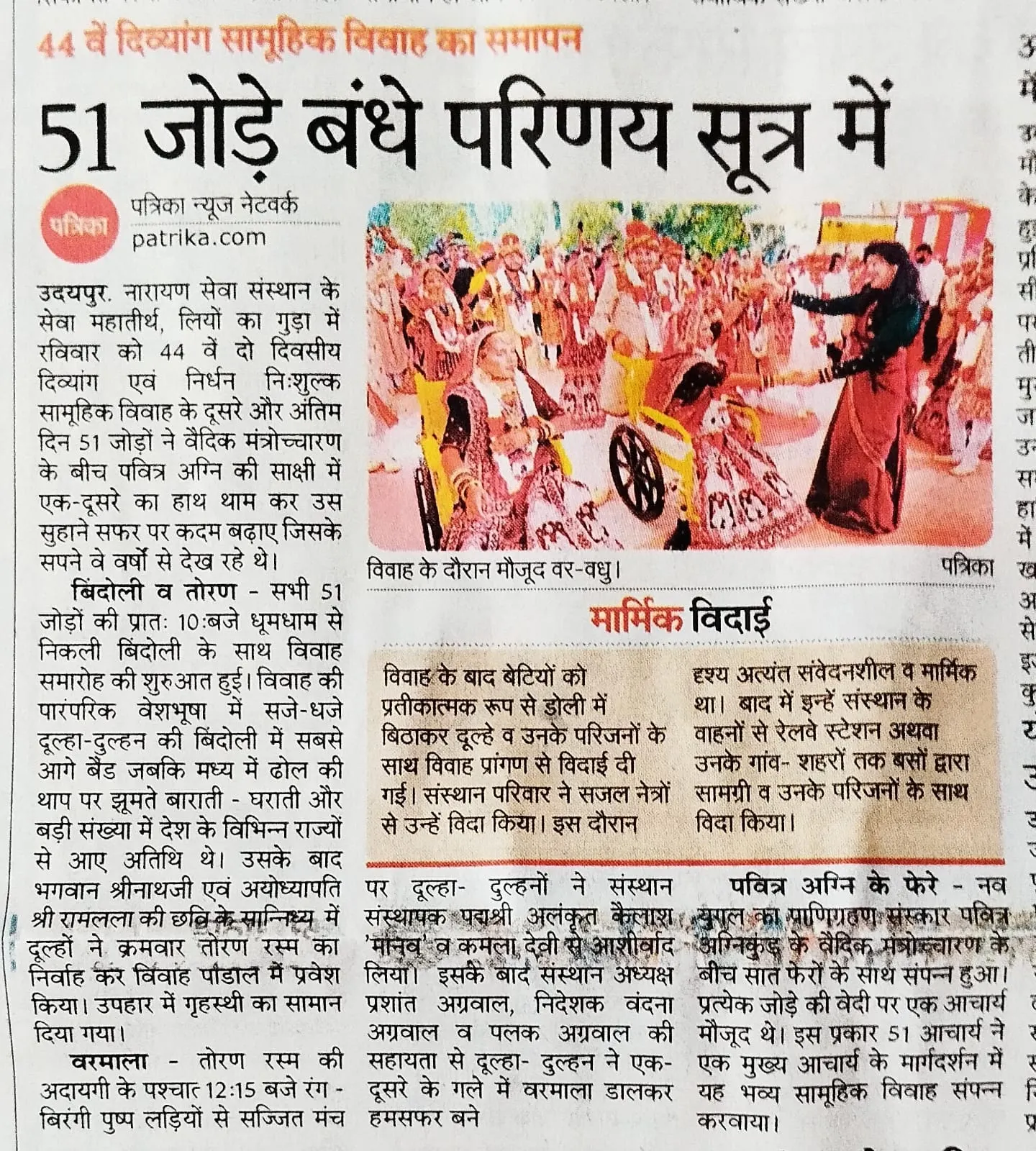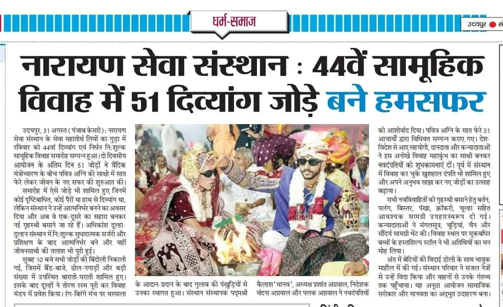 వికలాంగుల కోసం సామూహిక వివాహం | నారాయణ్ సేవా సంస్థాన్ NGO